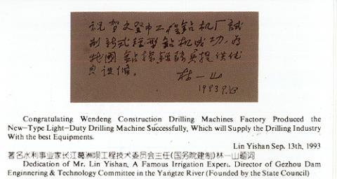 國(guó)家水利部林一山副部長(zhǎng)題詞