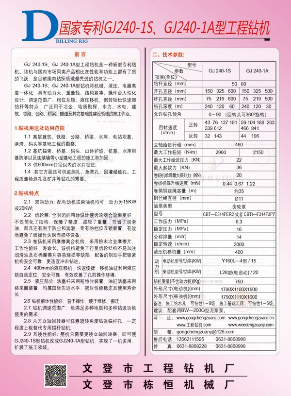 GJ240-1A型鉆機產(chǎn)品熱銷城市:山東,浙江,廣東,江蘇,河北